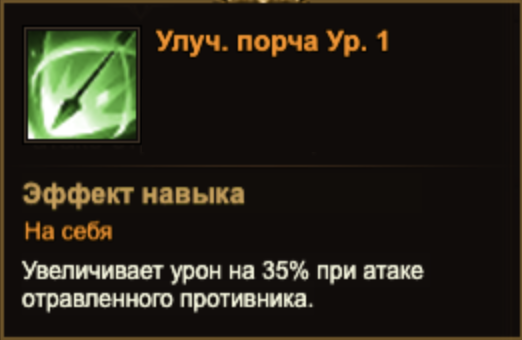 Порча — пассивное умение — применяется к самому герою. Увеличивает урон героя на 25% при атаке отравленного противника.