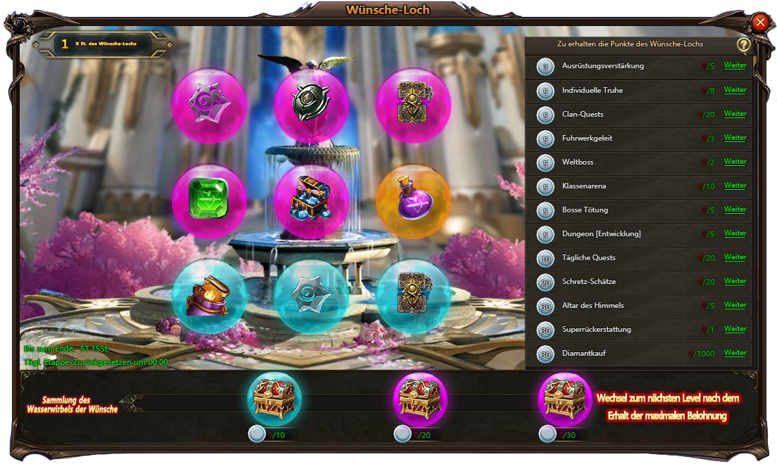 Wunsche Loch - viel Quest, reiche Belohnungen!