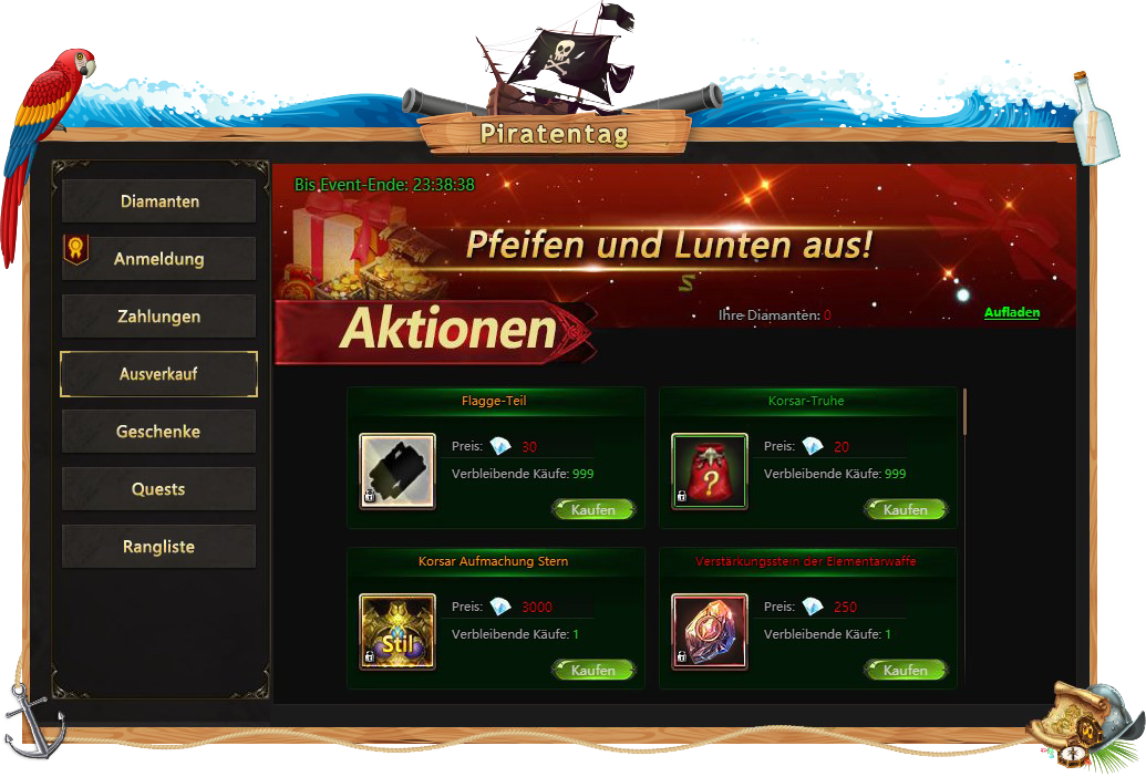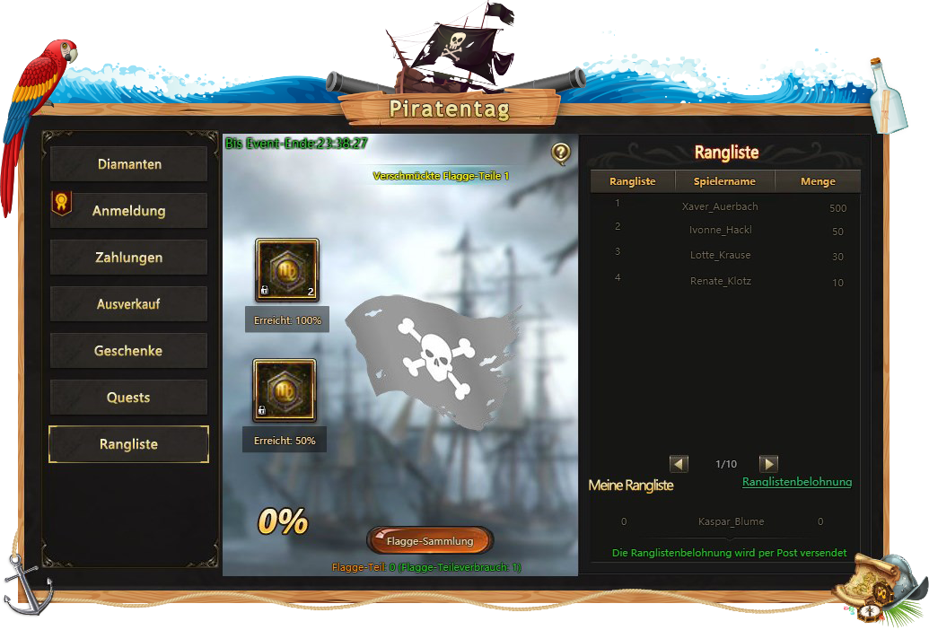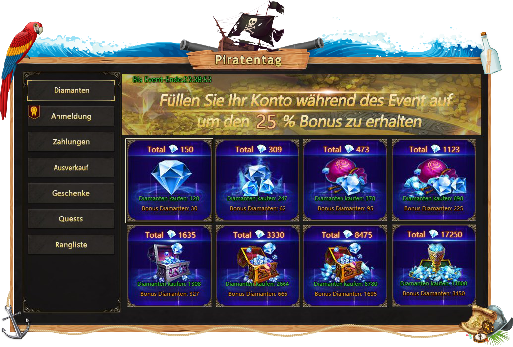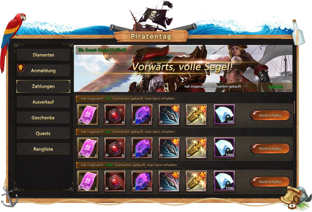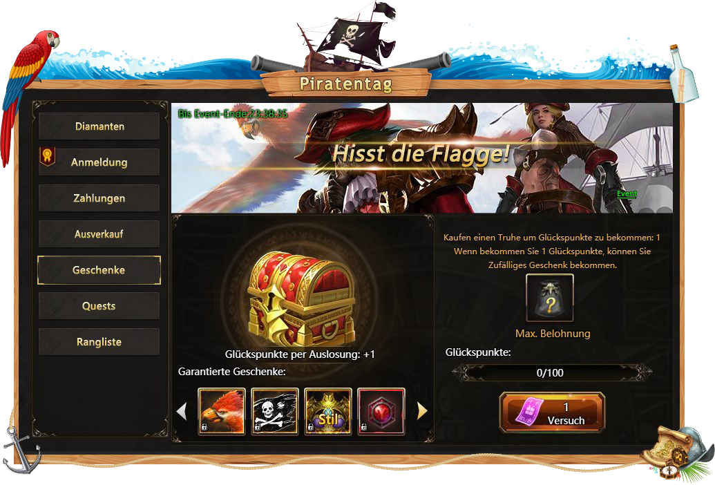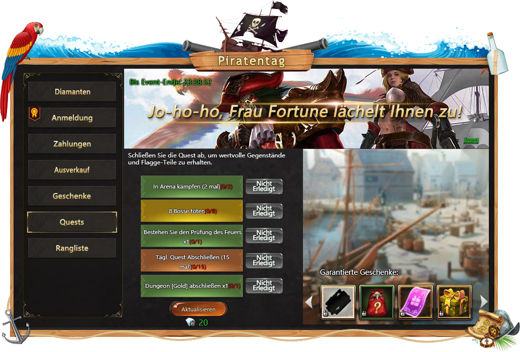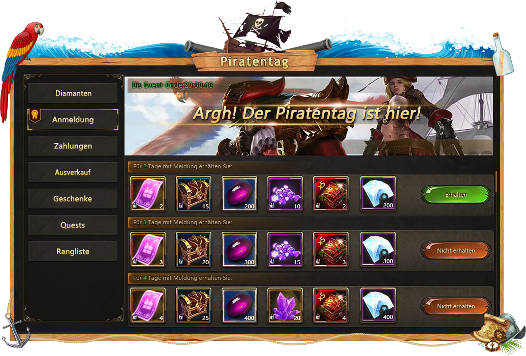 Anmeldung - besuchen Sie Piratentag Fest taglich und bekommen verschiedene Belohnungen;