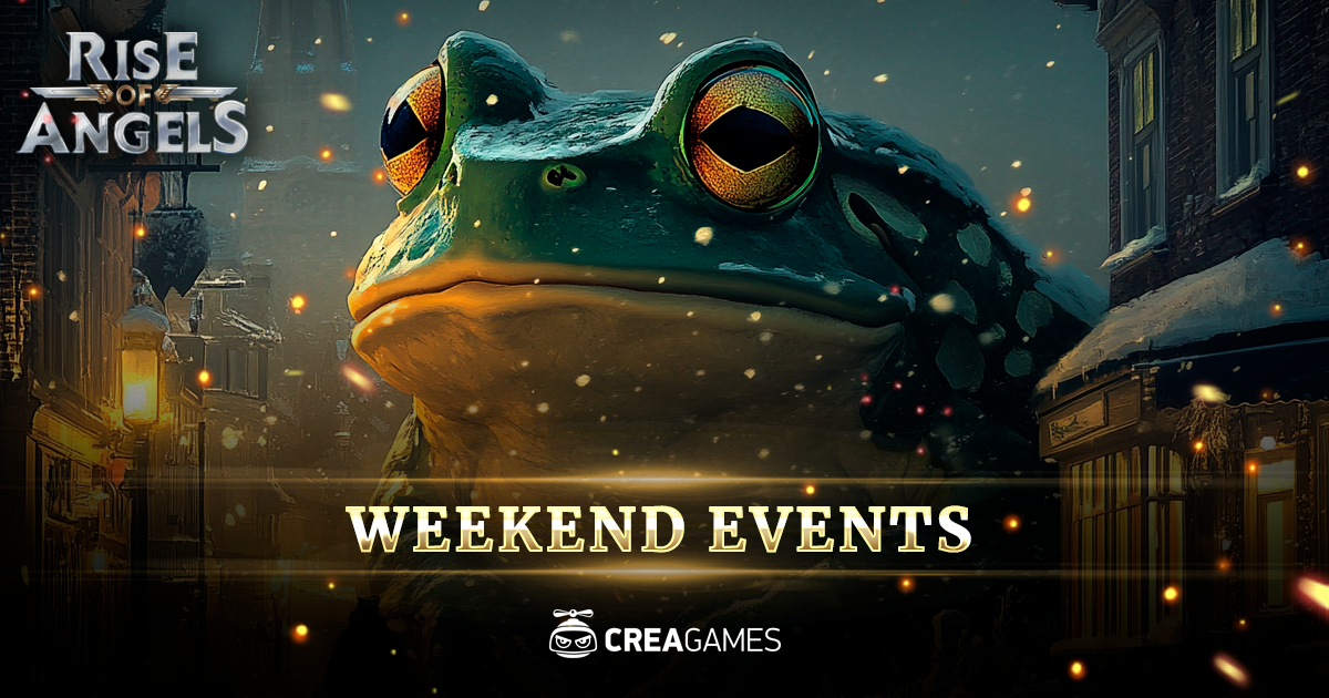The world is full of examples of amazing symbiosis. Many cities on the continent, located along the Gray Marshes, suffer from an invasion of bloodthirsty insects: gnats, flies, and mosquitoes gather in massive swarms, becoming a serious threat to most living beings. Naturally, they are drawn to settlements filled with defenseless residents. In the past, people had to defend themselves with magic, but a less costly solution was found—giant frogs inhabiting the marshes. These frogs live a mostly sedentary lifestyle, preferring to hunt from ambush, and eye the swarms of insects with envy. Once these amphibians were allowed to live side by side with humans, the problem solved itself. Plus, they became a local tourist attraction! Now, let's talk about the upcoming Weekend Events in Rise of Angels!