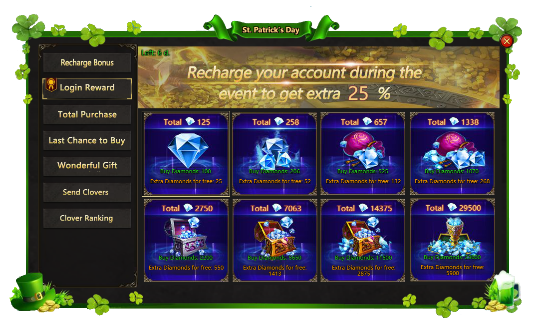 During the event, time make a purchase and get 25% more diamonds as a bonus.