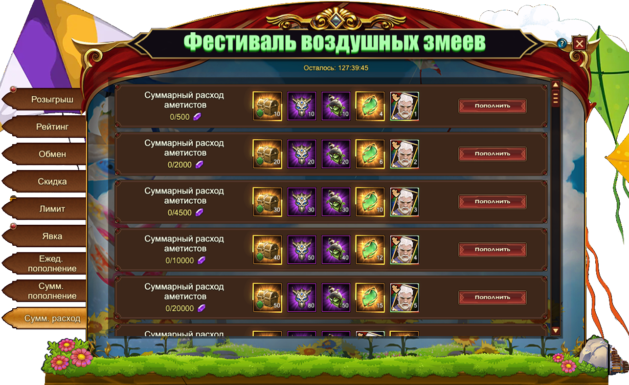 За участие в розыгрыше определенное количество раз вы также можете получить: Камень усиления герояЗолотой воздушный змей и Камень повышения героя.