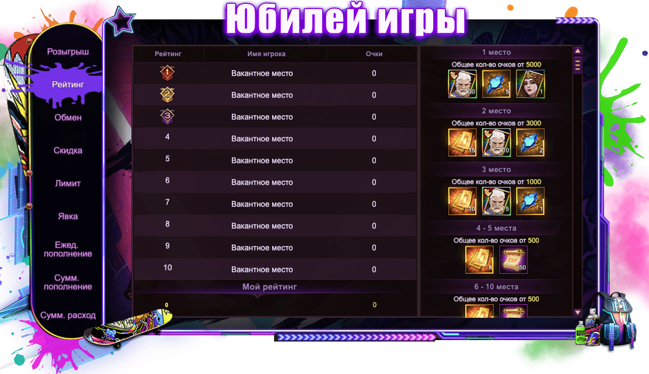 Участвуйте в розыгрыше различных ценных предметов, чтобы получить: Ядро Уру, Сундук самоцветов 6 ур., Свиток славы, Частица сердца, Сила рода, Песок темной звезды, Сундук души 3, Фрагмент крыльев дракона, Крылья дракона, Эмблема величия