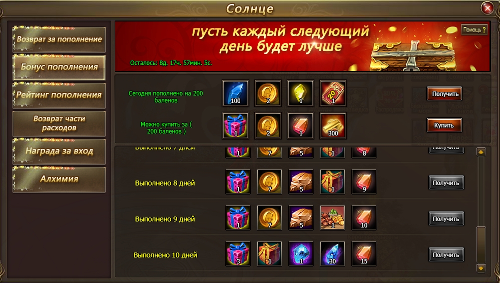 8.    Со 2 по 6 августа в Золотом сундуке вас ждут награды за пополнение счета от 1000 баленов.