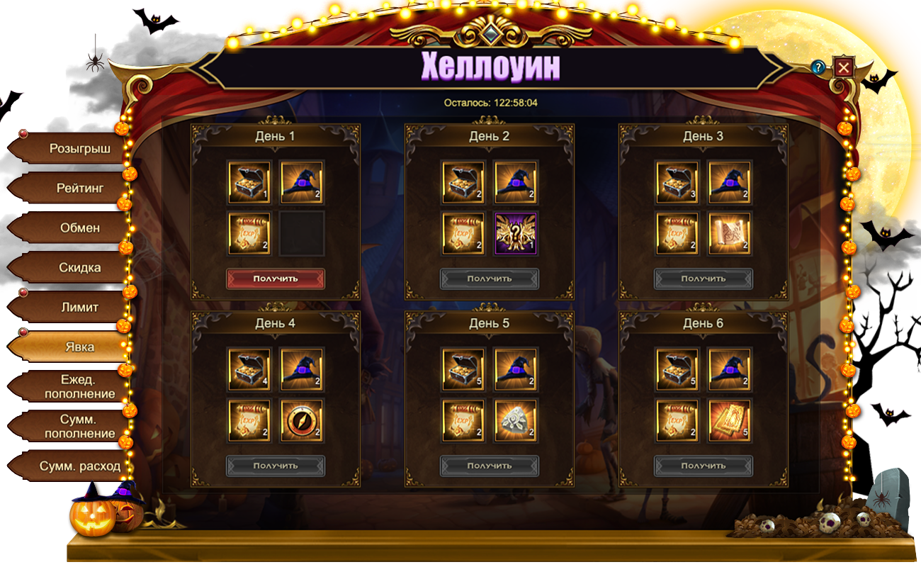 За посещение события ежедневно становятся доступны различные подарки. Например: Ведьмина шляпаСумка золотаОранжевый свиток опыта, уникальный титул СладкоежкаПотерянная картаКомпасСвиток славы и Пропуск на арену.