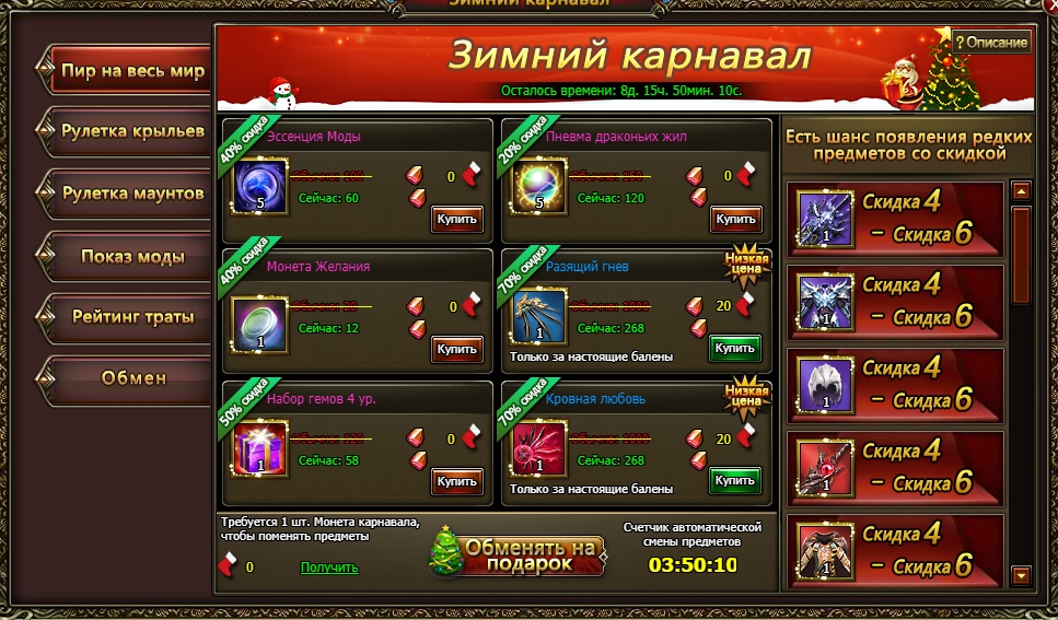 12.    С 5 по 8 января вращайте рулетку Сокровищницы бога и забирайте все самое ценное.