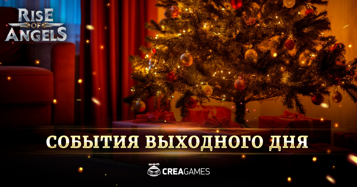 Сегодня вы проснулись первым. За окном темно, поэтому трудно понять точное время. На столе — мандариновые шкурки, недопитое шампанское, шоколад, подсохший бутерброд с колбасой, мишура, потухший бенгальский огонь... Да, кажется, ночка выдалась что надо. С легкой неуверенностью вы встаете на ноги. Украшенная сотней игрушек новогодняя ель призывно моргает огоньками. Вы тянетесь к ней рукой. Кажется, ещё немного, и что-то произойдет. Откроется какая-то тайна или секрет. Вы тянетесь из последних сил, цепляетесь рукой за воздух и с удивлением хватаете записку: "Вот список событий выходного дня в Rise of Angels".