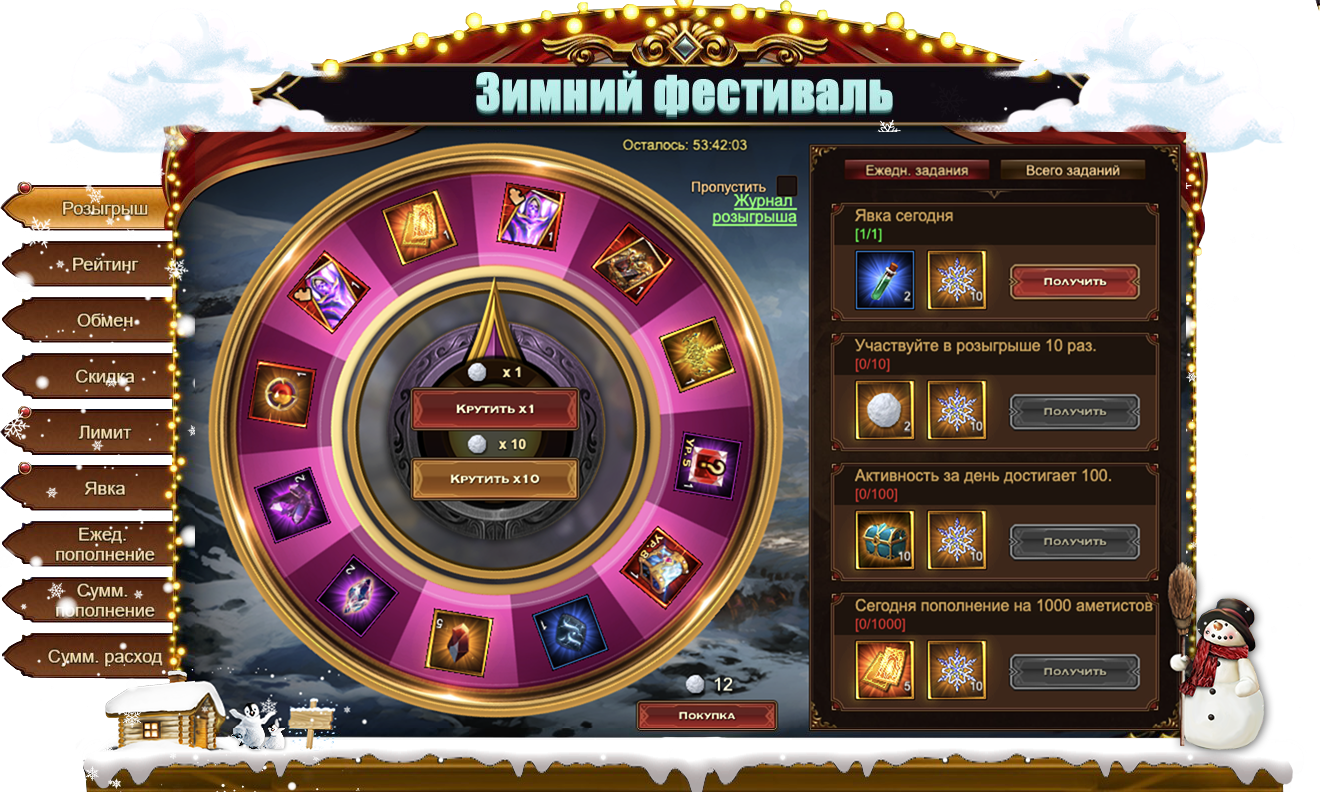 За участие в розыгрыше определенное количество раз вы также можете получить: Камень усиления герояСнежинка и Камень повышения героя