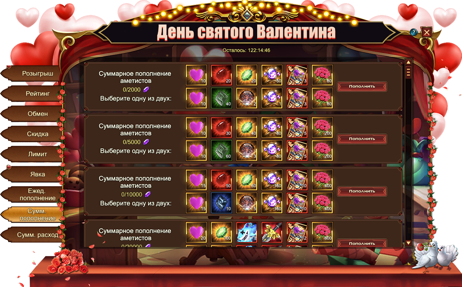 День Святого Валентина - Суммарное пополнение