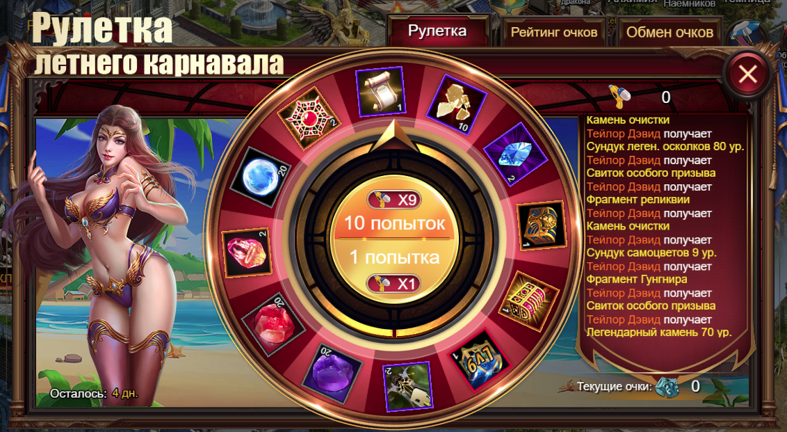 За каждые 10 прокруток вам будет начислено 10 очков, которые вы можете обменять на различные подарки.