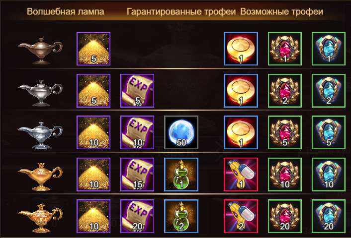 Каждый из видов лампы содержит гарантированную награду для своего обладателя, а также возможные роскошные призы.