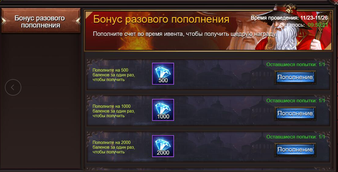 Бонус разового пополнения - получите на 100% больше баленов!