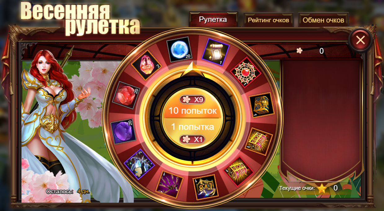 Весенняя Рулетка - испытайте свою удачу, соревнуйтесь в соответствующем рейтинге и обменивайте очки события на полезные предметы.