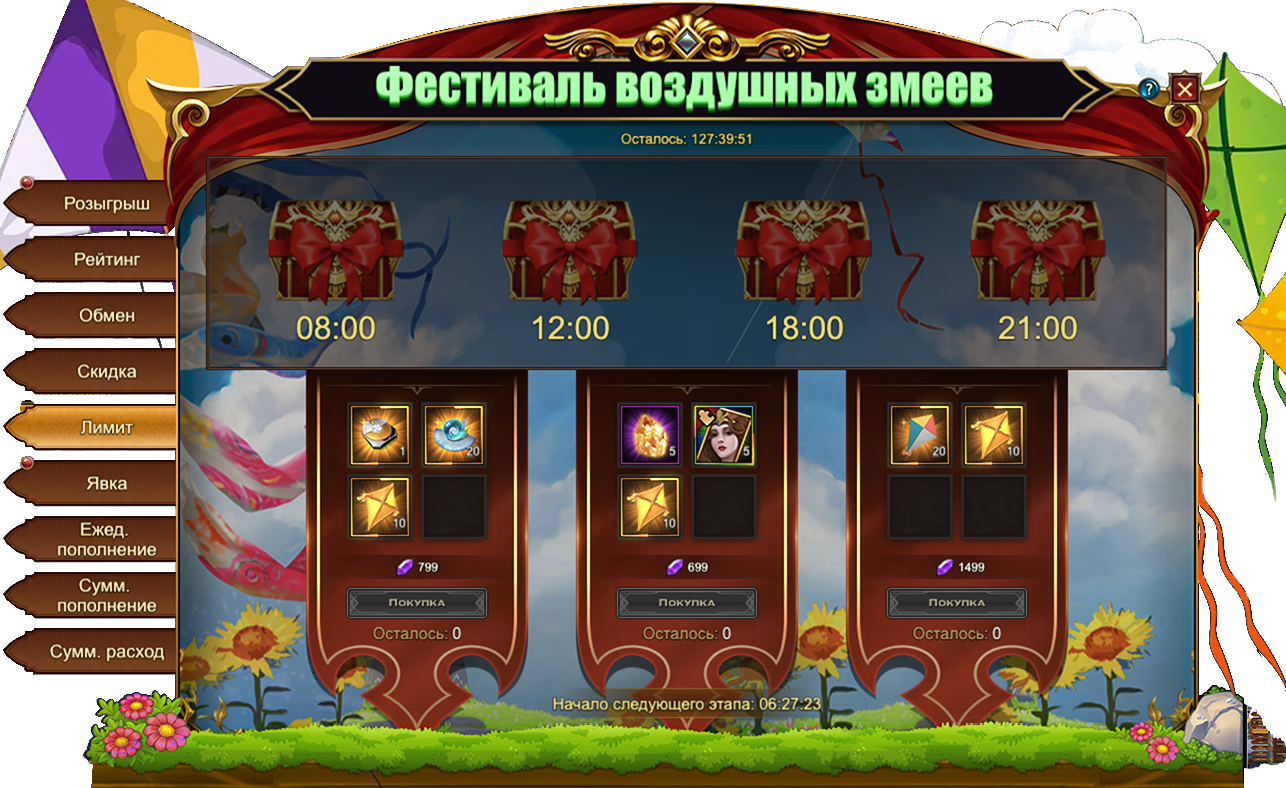 За участие в розыгрыше определенное количество раз вы также можете получить: Камень усиления герояЗолотой воздушный змей и Камень повышения героя.