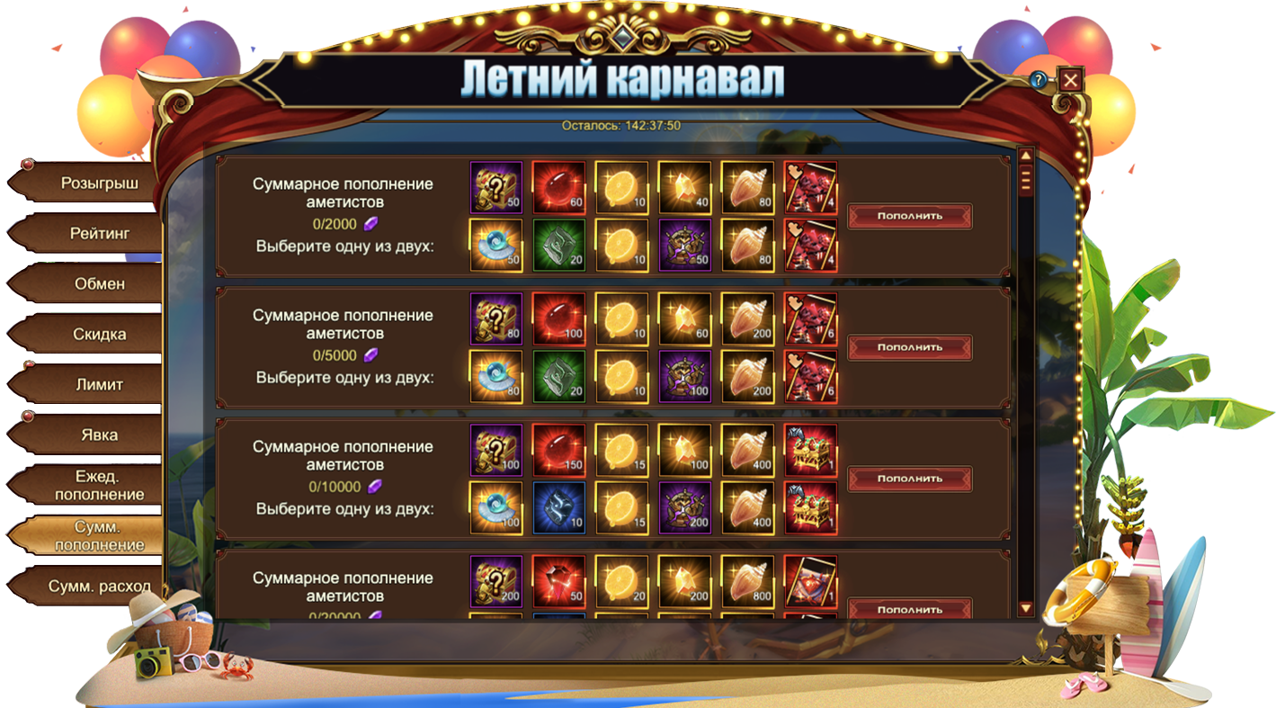 Летний карнавал - Суммарное пополнение