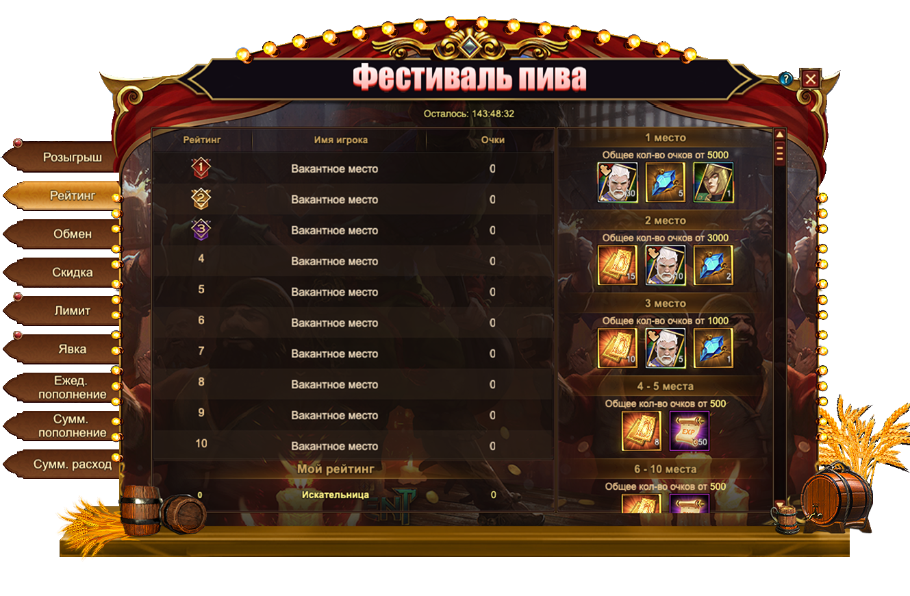За участие в Розыгрыше вы получаете специальные очки, определяющие ваше положение в Рейтинге фестиваля. В зависимости от положения в рейтинге можно получить: Свитки славыФиолетовые свитки опытаСущность артефакта, [Фрагмент карты] Тюр и даже героя класса UR - коварного Локи